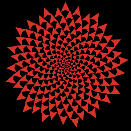 When a new seed emerges, the older ones grow slightly and move further from the center--the source--and the youngest seed finds the largest gap between existing seeds, in which it can grow. This gap can be found by turning counter clockwise. The angle made by this turn is a multiple of the golden ratio (1.618). The golden ratio, based on the Fibonacci series (1, 1, 2, 3, 5, 8, 13...), equals the limit of F(n)/F(n-1). Thus, these spirals can be mathematically generated, using the golden ratio.