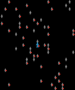 Disease Solo is a one-player version of the HubNet activity Disease. It simulates the spread of a disease through a population. One agent in the population is a person controlled by the user; the others are "androids" controlled by the computer.