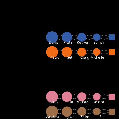 This activity uses NetLogo's network support to move the goods from stage to stage. Each player as a supply link from the player below them in the chain and a demand link from the play above them in the chain. Orders are placed on the demand links and received on the supply links.