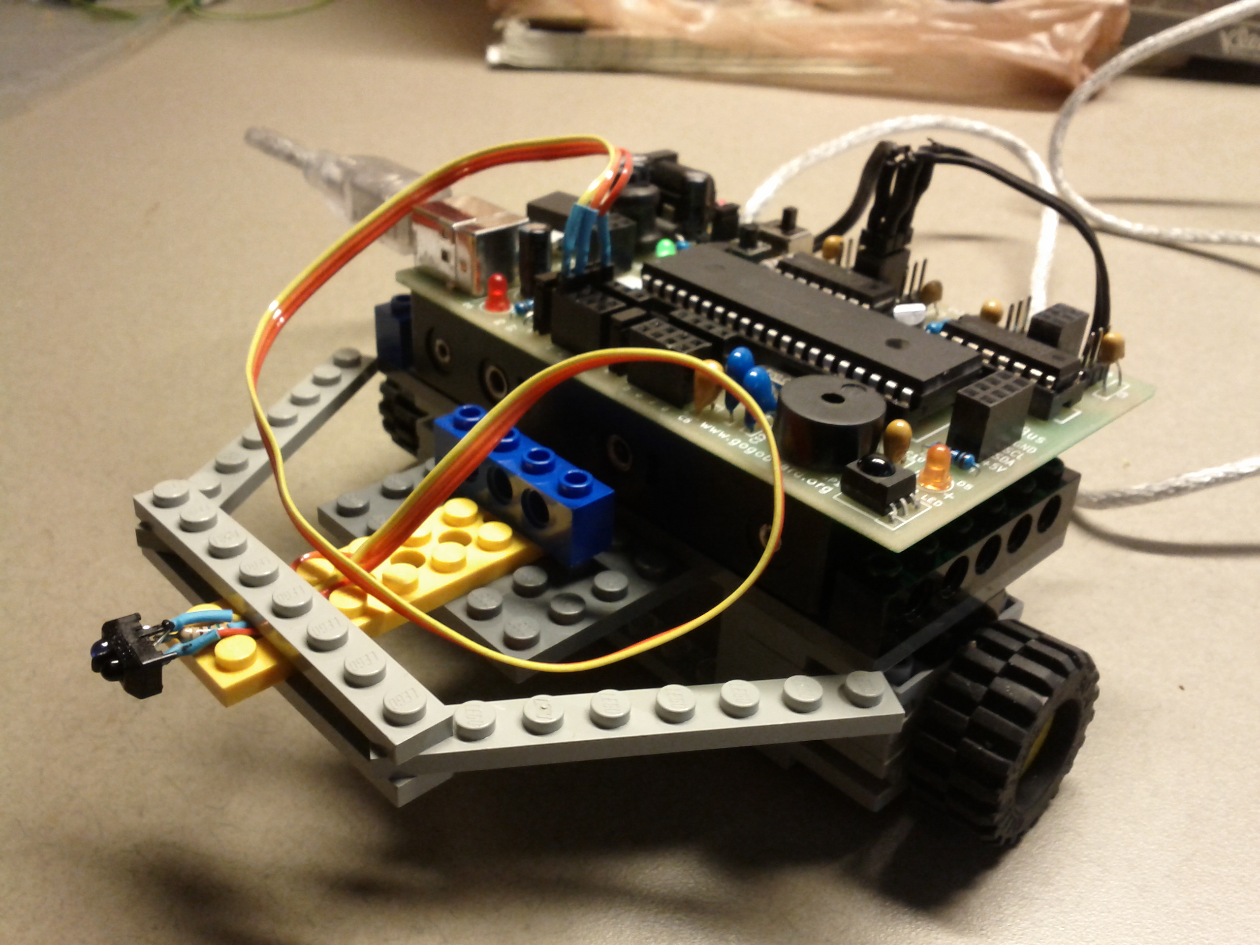 The default behavior of the robot is very simple. It will go forward until it encounters an obstacle. It will then turn and back up slightly, and then continue forward.