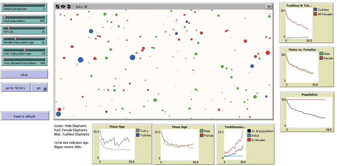 Also try to set INITIAL-TUSKLESSNESS to 0 and see what would happen if elephants haven't had this mutation.