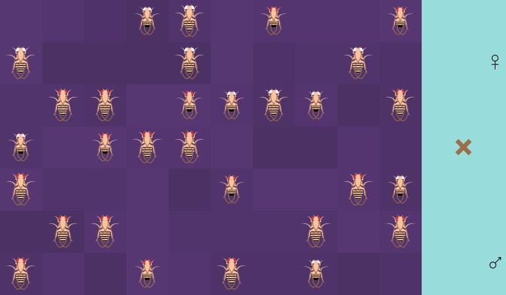 4. Choose a male and a female in the simulation window. The males are smaller and have a dark abdomen tip.