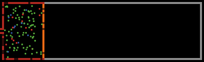 Choosers: SHOW-SPEED-AS-COLOR? allows you to visualize particle speed using a color palette. - The "blue-green-red" setting shows the lower half of the speeds of the starting population as blue, and the upper half as red. - The "violet shades" setting shows a gradient from dark violet (slow) to light violet (fast). - The "all green" setting shows all particles in green, regardless of speed. - The "custom color" setting, referenced in the Pedagogica version of this model, allows the user to modify the color of one or more particles, without having to worry that the particles will be recolored with each tick of the clock (as is the case for the other color options).