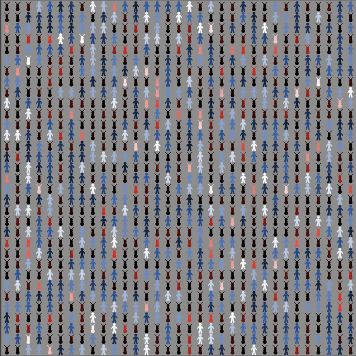 - Modify social influence: Increase or decrease the weight of neighbor behavior on agents’ decisions. Social influence is relatively low, so changes may have subtle effects.
